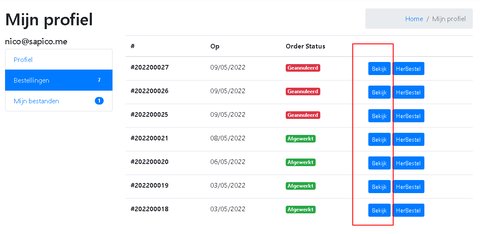 Klanten kunnen aanvragen om hun facturen en creditnota’s online te bekijken. Indien het geäctiveerd werd, kunt u deze raadplegen bij “Mijn bestanden”.