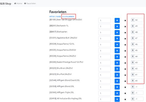 Indien u uw favorieten wilt rangschikken, dan is dat mogelijk. Standaard staat het volgnummer op -1.